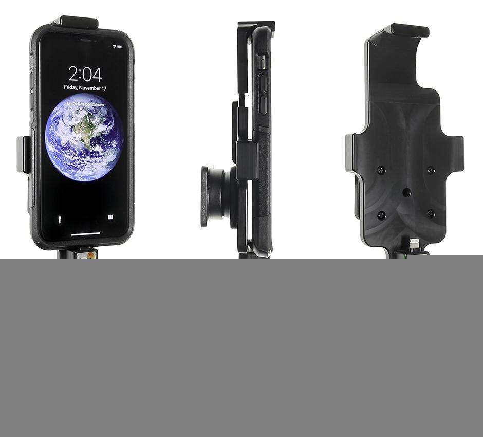 Hållaren är utrustad med kulled. Det innebär att du enkelt kan justera vinkeln på din enhet för att undvika ljusreflektion i skärmen. Den gör det även möjligt att växla mellan stående och liggande läge på en sekund. Tillverkad av svart Acetal plast. Hållaren är mönsterskyddad. Montera hållaren på ProClip monteringsplattform så har du alltid din iPhone inom bekvämt syn- och räckhåll när du kör bil!