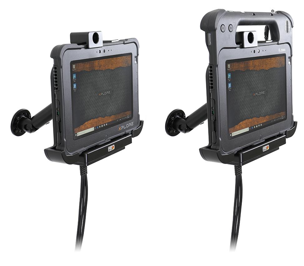 Hållaren är utrustad med en kulled så du kan enkelt justera vinkeln för att se bra på skärmen. Vinklingsbar 17° och vridbar 360°. Monteringsplatta 42×50 mm med 4 mm AMPS-hål. Tillverkad av svart ABS/Acetal plast. Tillverkad i Sverige. Strömkabeln på hållaren skall anslutas via 2 A säkring. Bör monteras av fackman.