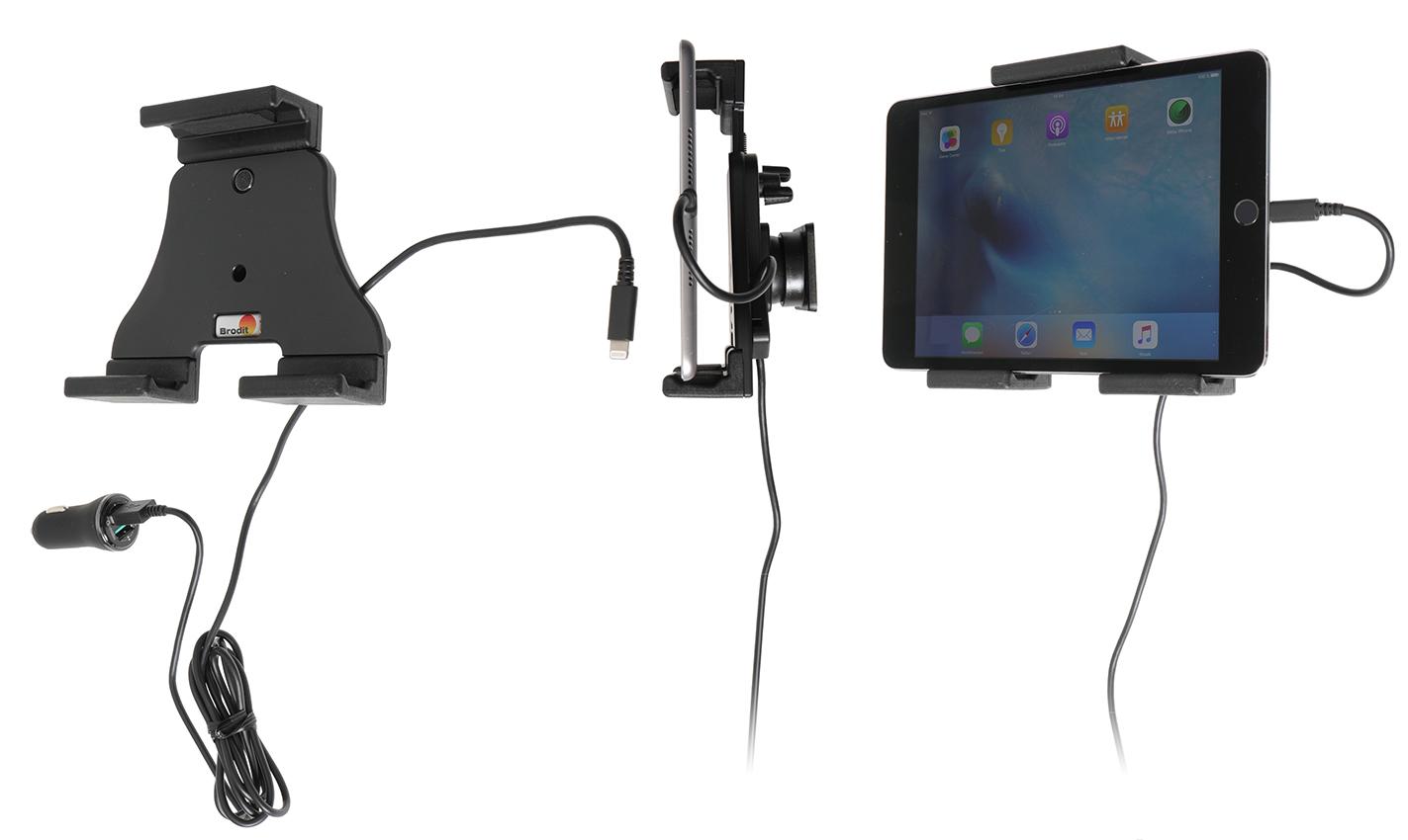 Ansluts till bilens USB uttag eller 12/24V kontakt. Med fly lead, du ansluter manuellt laddkabeln till enheten vid behov, laddar ej automatiskt när du sätter enheten i hållaren. Med kulled. Vinklingsbar 17°, vridbar 360°. Greppytorna är försedda med mjukt gummi för glidfritt grepp samt skydd mot repor. Monteringsplatta 42×50 mm, AMPS-hål. Tillverkad av svart ABS plast. Tillverkad i Sverige.