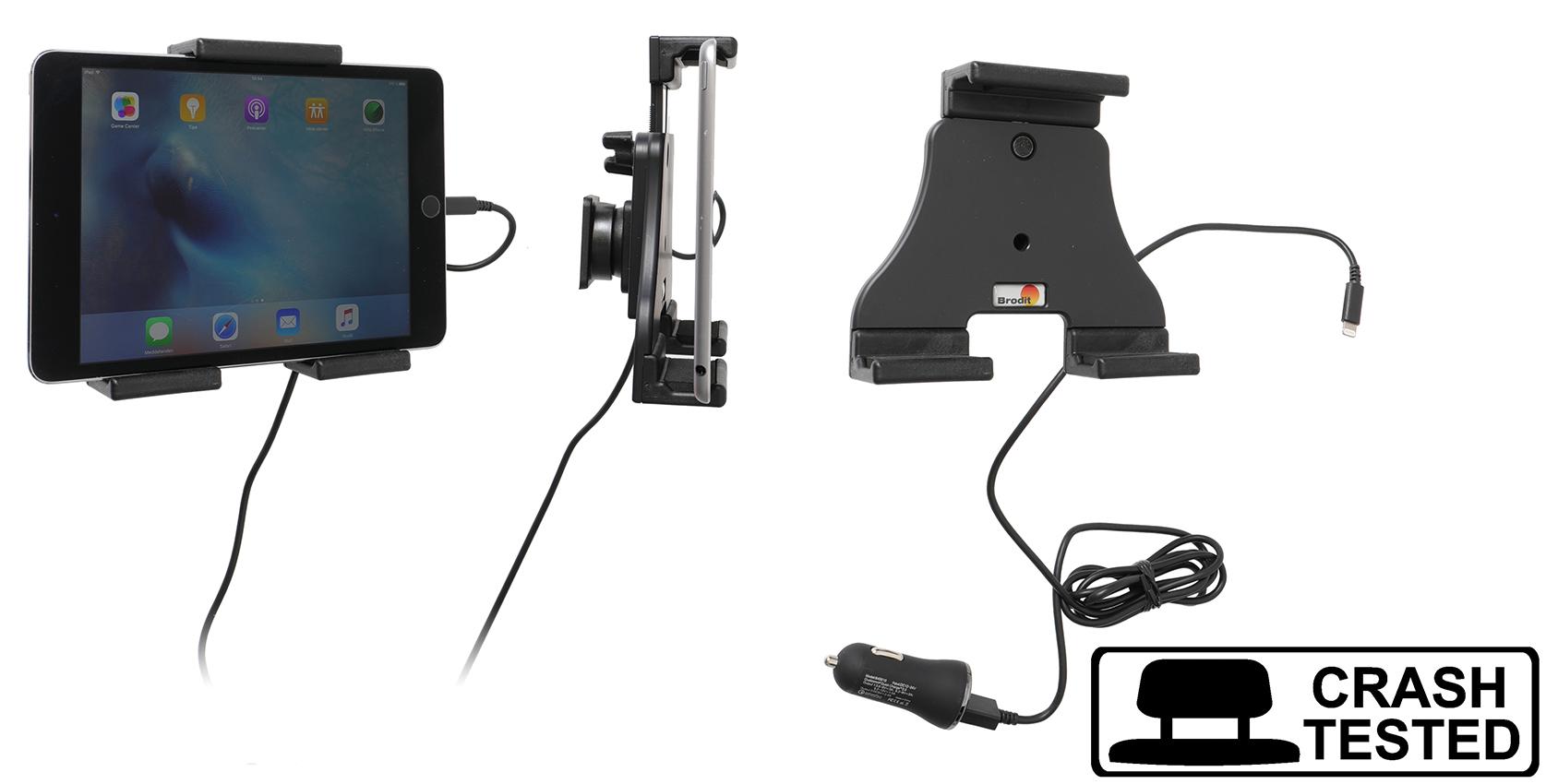 Den här hållaren är krocktestad och godkänd för användning med enhet utan skal på Brodits nackstödsfäste.