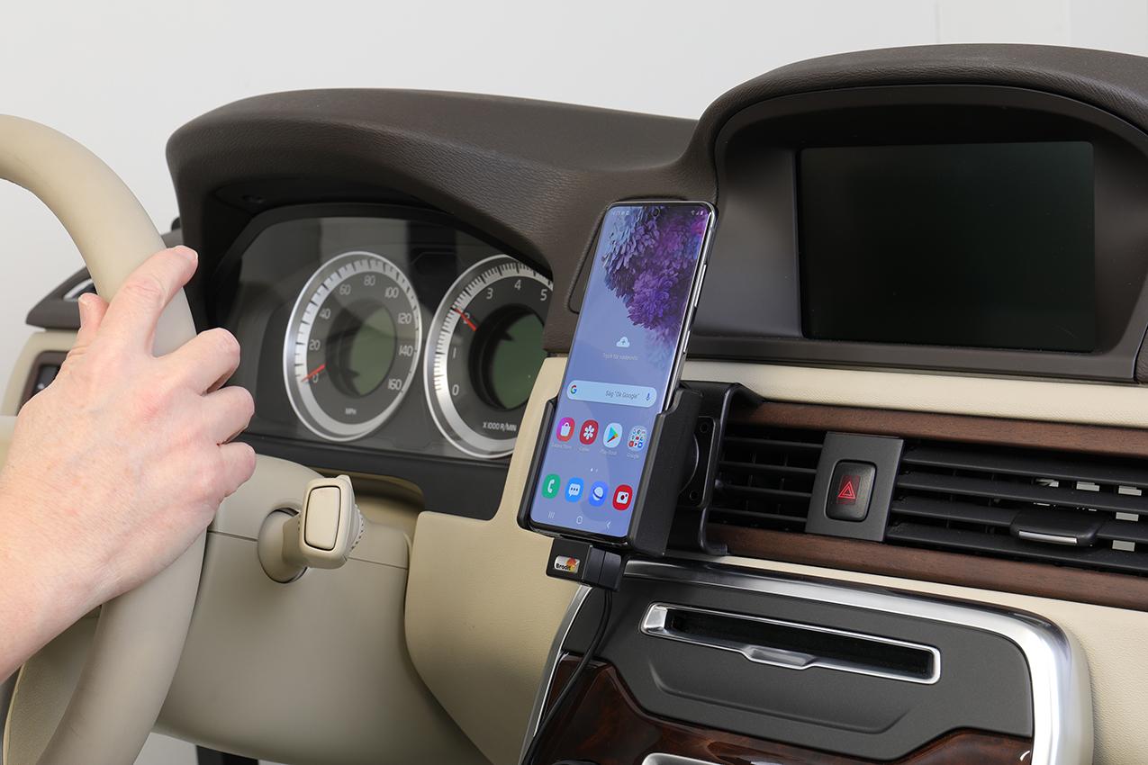 Ha ditt mobilbatteri full-laddat i en aktiv hållare, alltid inom syn- och räckhåll! Snyggt, diskret och bekvämt. Modellanpassad med perfekt, stadig passform. Med USB-kabel med ciggkontakt-adapter, välj mellan att ansluta till bilens USB uttag eller 12/24V kontakt. Cigg-adaptern har två USB portar: QC 3.0A + 2.4A. Du har full tillgång till kameran och alla knappar när enheten sitter i hållaren. Det är lätt att sätta enheten i hållaren så att den ansluter till laddningen, och att ta med den när du lämnar bilen.
