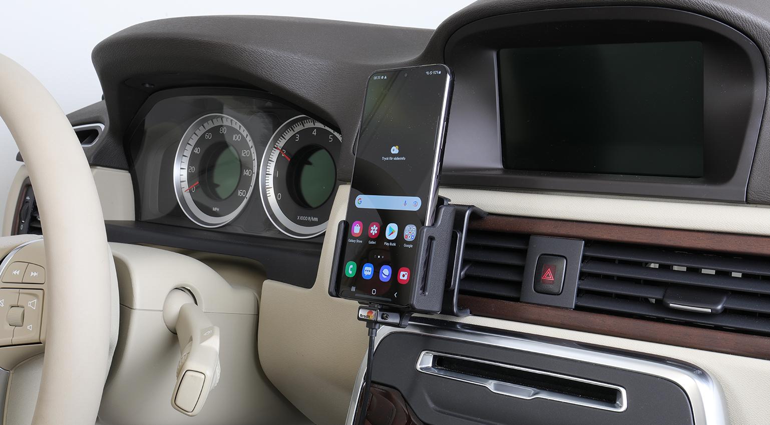 Med din mobiltelefon i en hållare i bilen har du den alltid inom syn- och räckhåll. Och med en aktiv hållare har du alltid ett nyladdat batteri när du lämnar bilen. Trafiksäkert, praktiskt och bekvämt! Med USB-kabel med cigg-adapter, välj mellan att ansluta till bilens USB uttag eller 12/24V kontakt. Cigg-adaptern har två USB portar: QC 3.0A + 2.4A. Det är lätt att sätta enheten i hållaren så att den ansluter till laddningen, och att ta med den när du lämnar bilen.