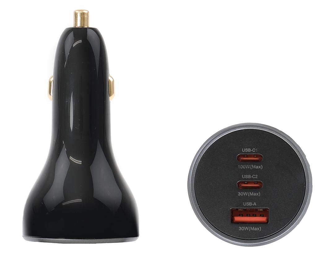 Brodits Billaddare med två USB-C och ett USB-A uttag som smidigt kopplas in i cigarettuttaget i bilen. Billaddaren har en total effekt på Max 160W. USB-C1 100W, USB-C2 30W och USB-A 30W. Perfekt för att ladda flera enheter under bilresans gång.