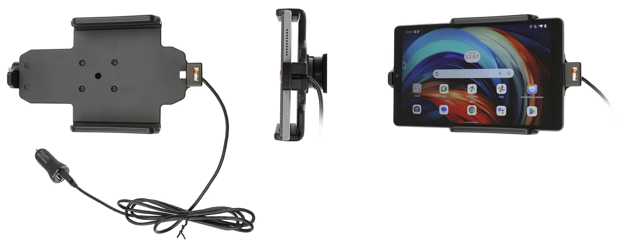 En montering av surfplatta på bilens instrumentbräda sker alltid på kundens eget ansvar. Brodit rekommenderar att använda surfplattor på bilens nackstöd, monterade på Brodits nackstödsfäste.