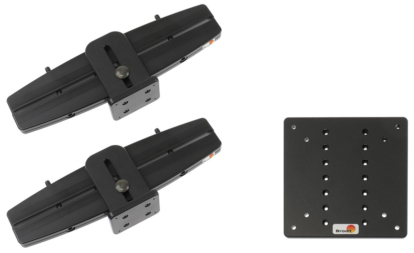 Denna monteringssats består av två nackstödsfästen och en monteringsplatta. Brodits nackstödsfäste fungerar som en monteringsplattform. Kombinerat med den stora monteringsplattan, erbjuder den en väldigt stark och stabil fästpunkt för större utrustning så som skydds-skärmar i taxi eller trafikskolebilar (skärm ingår EJ).